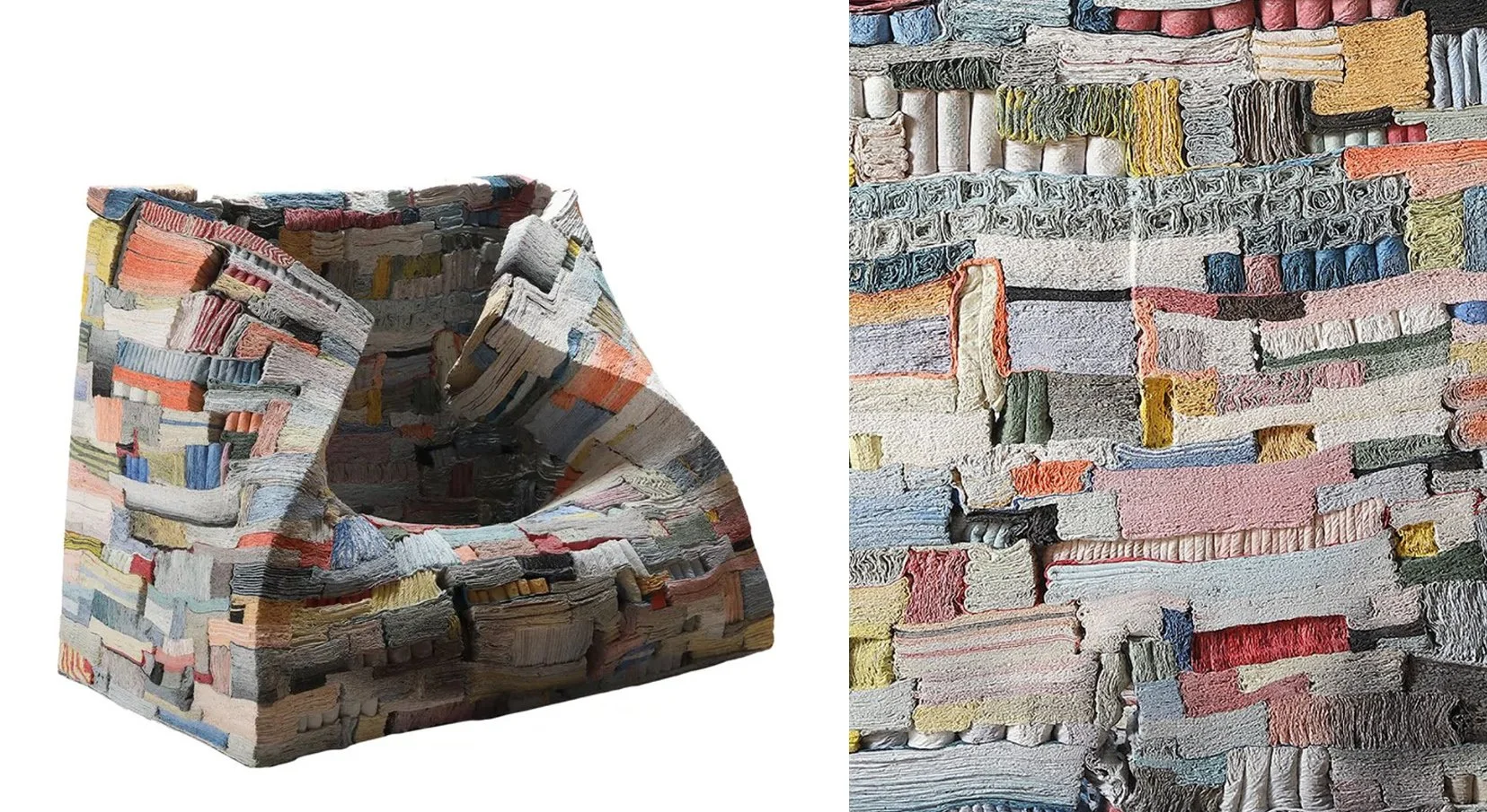 Siedzisko „Strata of Illusion” firmy Jongjin Park z Seulu. Siedzisko z papieru pokrytego powłoką porcelanową.