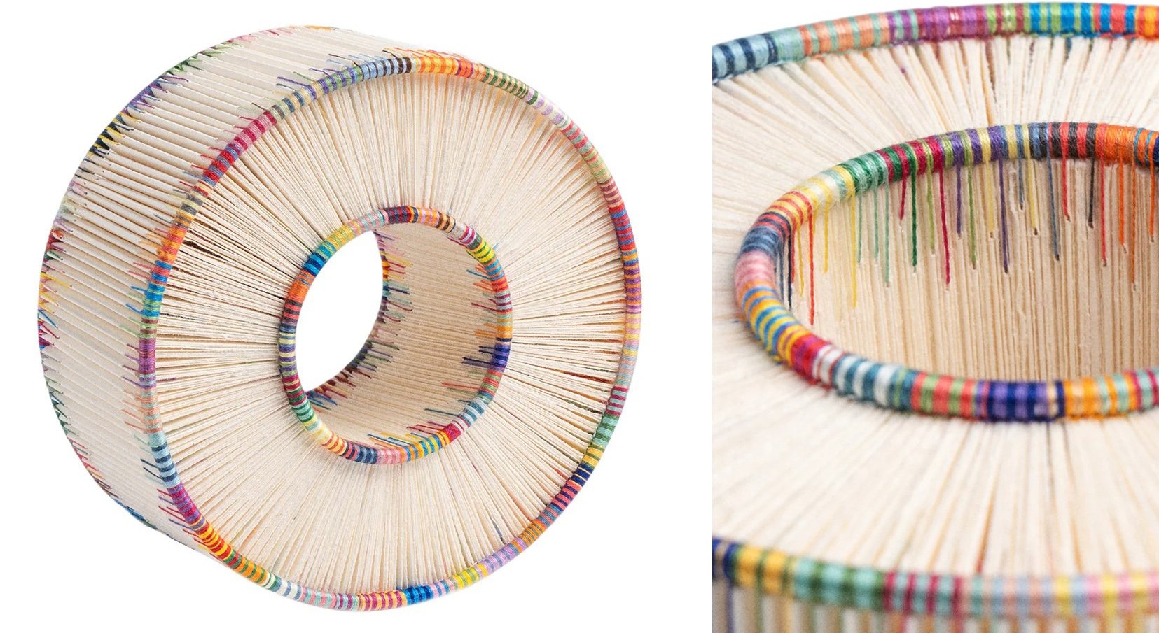Fragment siedziska „Strata of Illusion” firmy Jongjin Park z Seulu. Siedzisko z papieru pokrytego powłoką porcelanową.