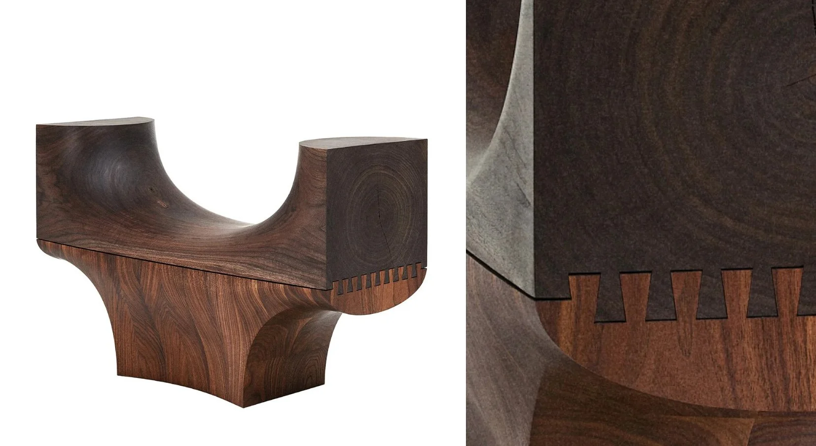 Ławka „Baeheullim” koreańskiego artysty Jong In Lee wykonana z dwóch kawałków drewna orzechowego.